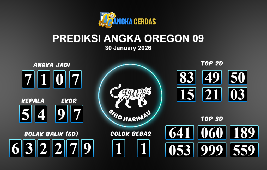 Prediksi Togel OREGON 09 untuk hari ini Jumat 30 Januari 2026,adalah salah