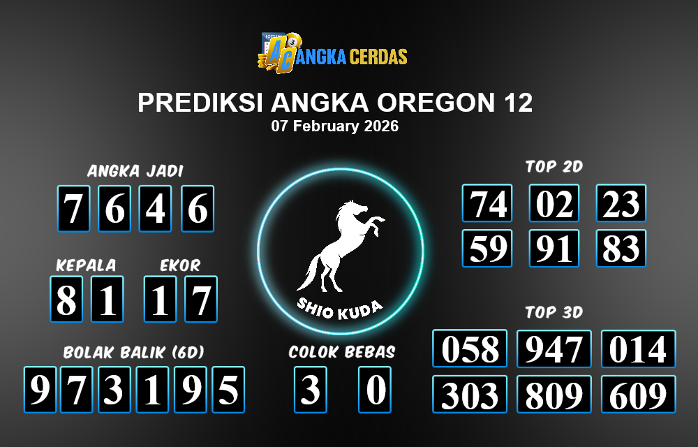 Prediksi Togel OREGON 12 untuk hari ini Sabtu, 07 Februari 2026, adalah salah