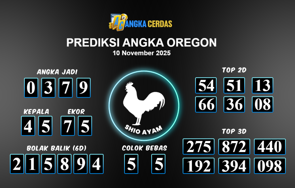 Prediksi Togel OREGON untuk hari ini Senin 10 November 2025, adalah salah