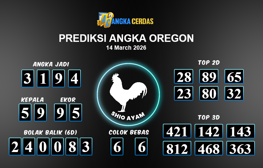 Prediksi Togel OREGON untuk hari ini Sabtu, 14 Maret 2026, adalah salah