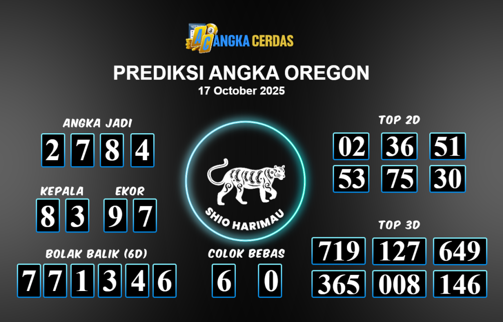 Prediksi Togel OREGON untuk hari ini Jum’at 17 Oktober 2025, adalah salah