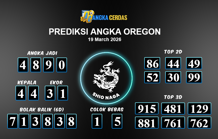 Prediksi Togel OREGON untuk hari ini Kamis, 19 Maret 2026, adalah salah