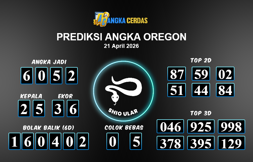 Prediksi Togel OREGON untuk hari ini Selasa, 21 April 2026, adalah salahsatu jenis togel yang memiliki banyak penggemar.Ini terutama ditujukanbagi Anda yang menyukai 4d/3d/2d. Prediksi Angka Cerdas yang kamisediakan,bisa