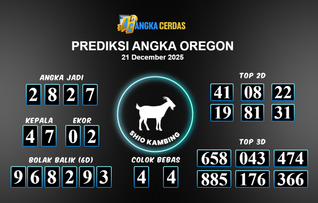 Prediksi Togel OREGON untuk hari ini Minggu 21 Desember November 2025, adalah salah
