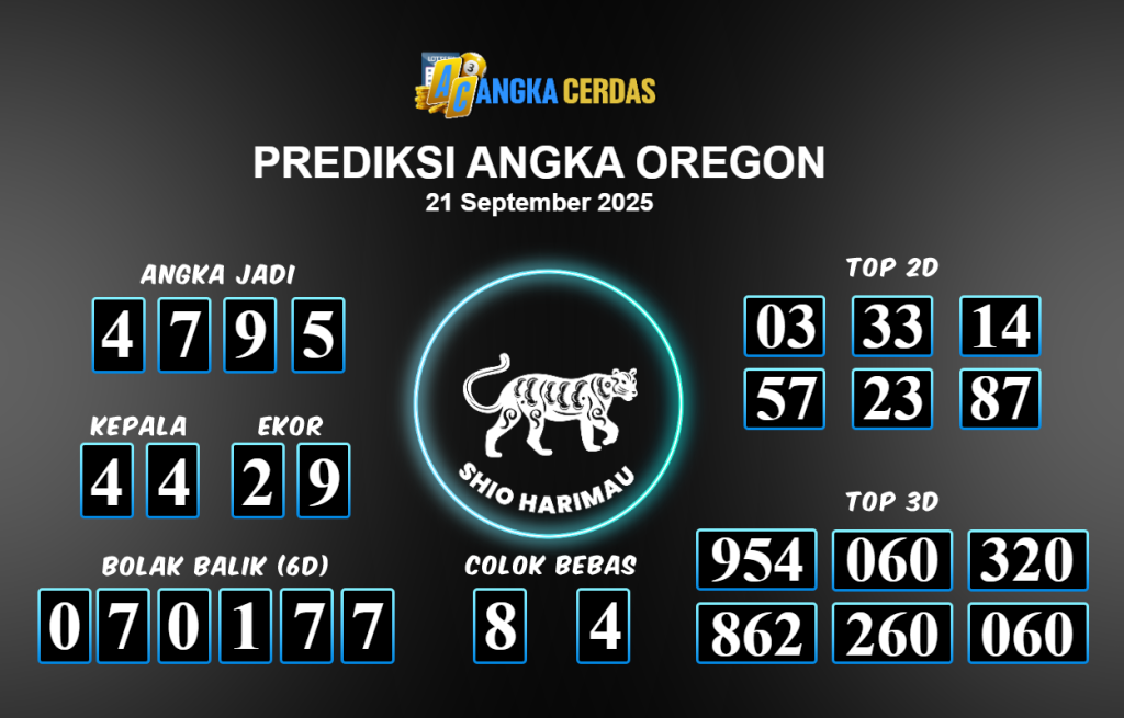Prediksi Togel OREGON untuk hari ini Minggu 21 September 2025, adalah salah