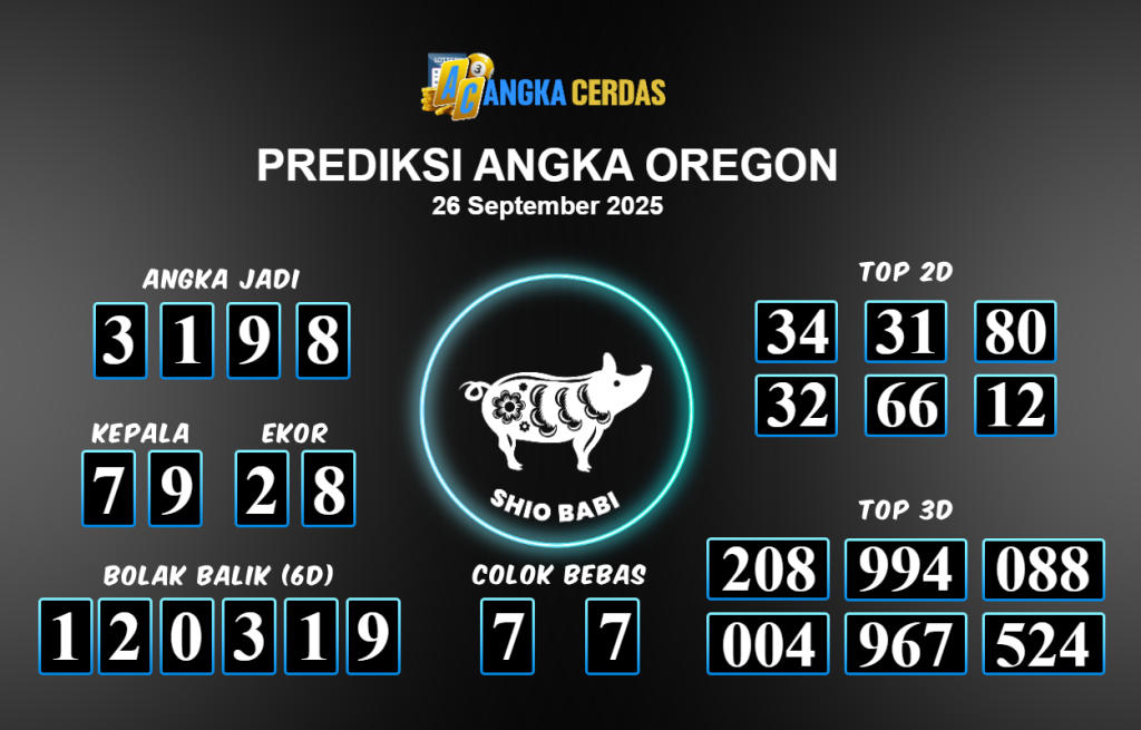 Prediksi Togel OREGON untuk hari ini Jumat 26 September 2025, adalah salah
