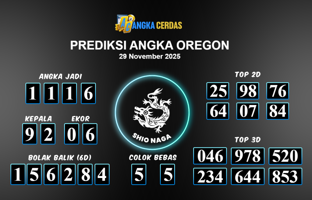 Prediksi Togel OREGON untuk hari ini Sabtu 29 November 2025, adalah salah