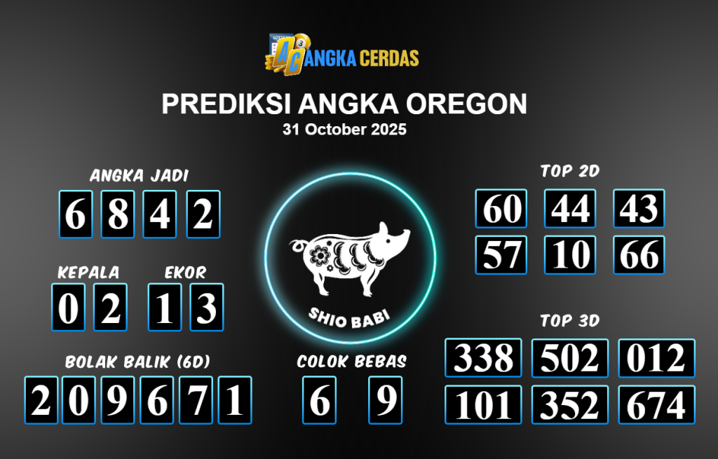 Prediksi Togel OREGON untuk hari ini Jumat 31 Oktober 2025, adalah salah