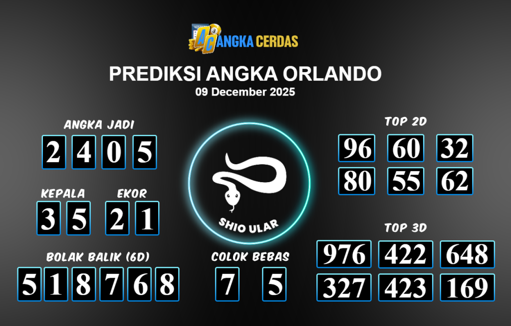 Prediksi Togel ORLANDO untuk hari ini Selasa 09 Desember November 2025, adalah salah