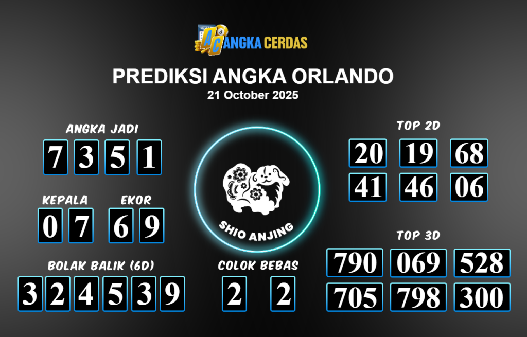 Prediksi Togel ORLANDO untuk hari ini Selasa 21 Oktober 2025, adalah salah