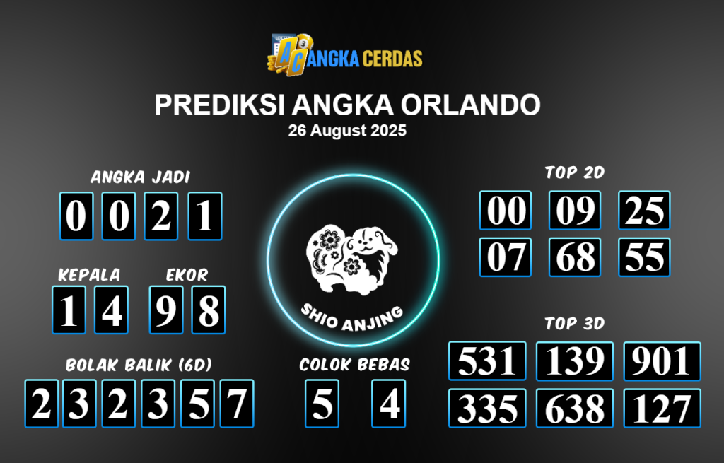 Prediksi Togel ORLANDO untuk hari ini Selasa 26 Agustus 2025, adalah salah