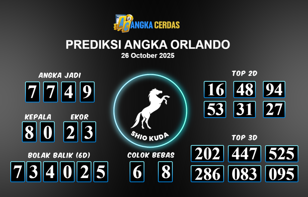 Prediksi Togel ORLANDO untuk hari ini Minggu 26 Oktober 2025, adalah salah