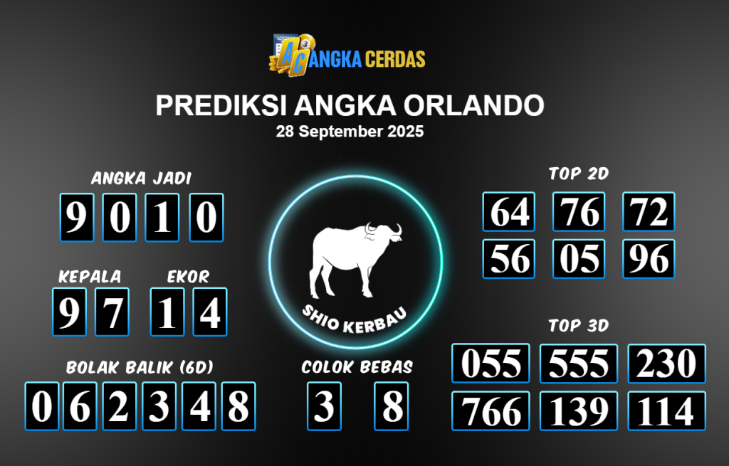 Prediksi Togel ORLANDO untuk hari ini Minggu 28 September 2025, adalah salah