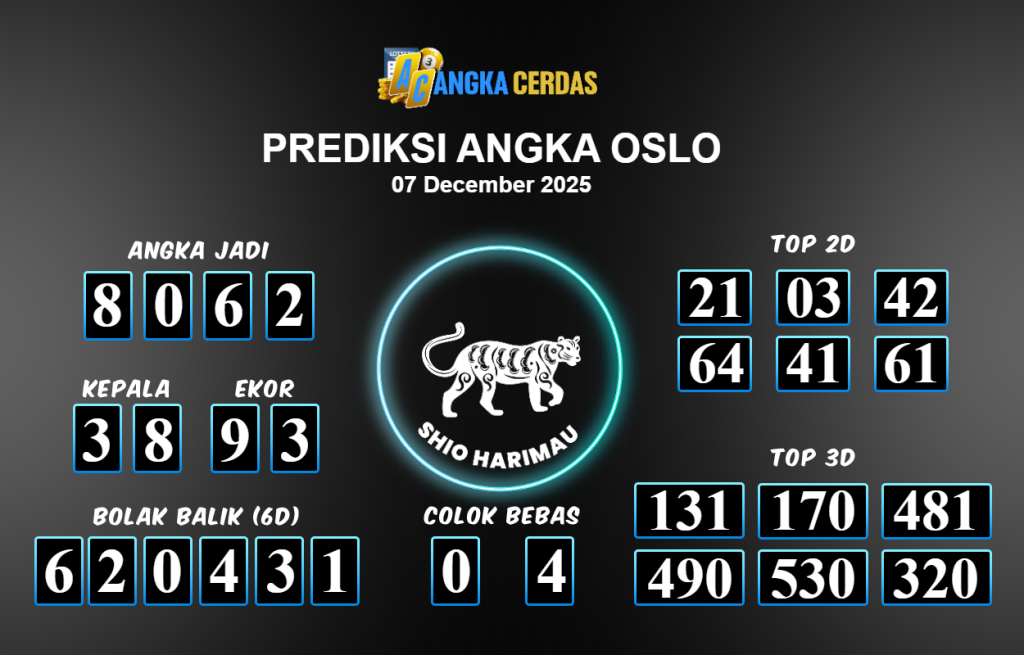 Prediksi Togel OSLO untuk hari ini Minggu 07 Desember November 2025, adalah salah