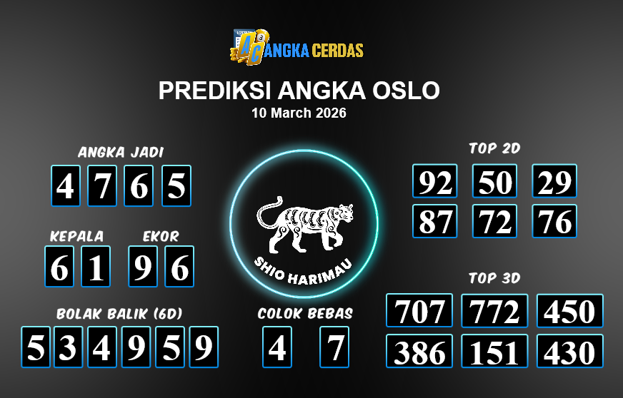Prediksi Togel OSLO untuk hari ini Selasa, 10 Maret 2026, adalah salah