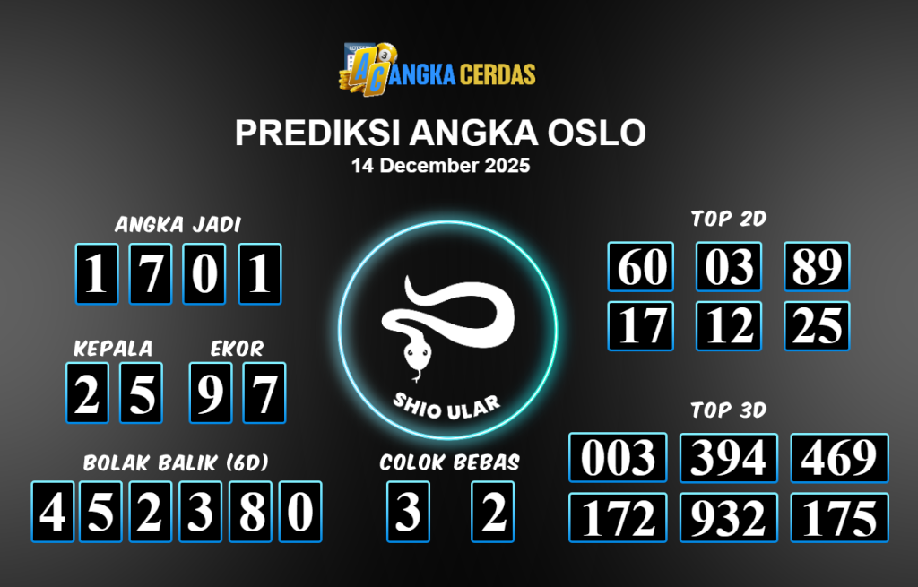 Prediksi Togel OSLO untuk hari ini Minggu 14 Desember November 2025, adalah salah