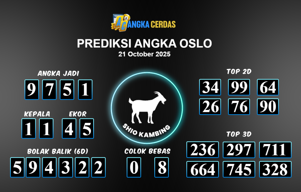 Prediksi Togel OSLO untuk hari ini Selasa 21 Oktober 2025, adalah salah