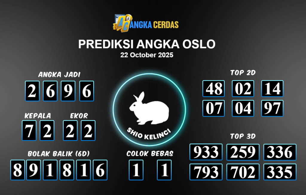 Prediksi Togel OSLO untuk hari ini Rabu 22 Oktober 2025, adalah salah