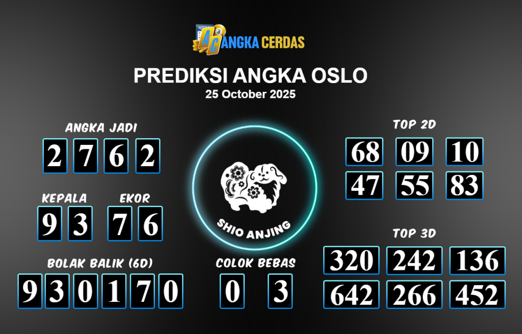 Prediksi Togel OSLO untuk hari ini Sabtu 25 Oktober 2025, adalah salah