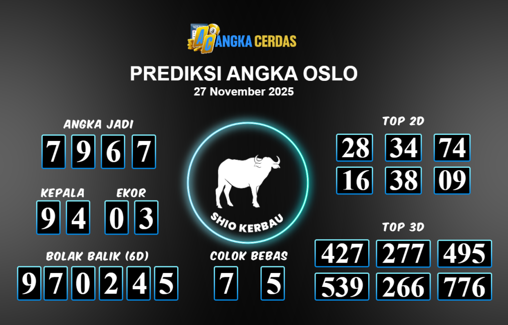 Prediksi Togel OSLO untuk hari ini Kamis 27 November 2025, adalah salah