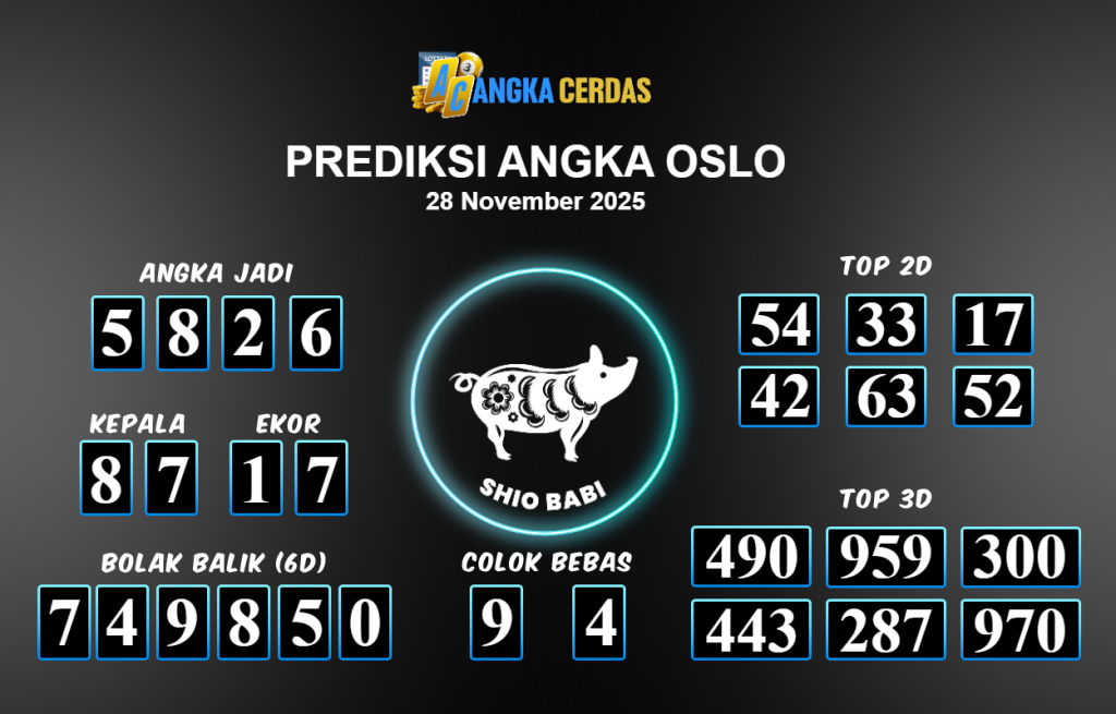 Prediksi Togel OSLO untuk hari ini Jumat 28 November 2025, adalah salah