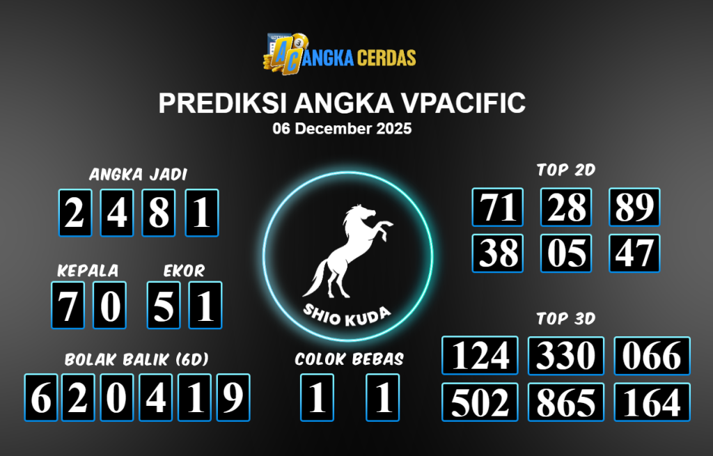 Prediksi Togel PACIFIC untuk hari ini Jumat 05 Desember November 2025, adalah salah
