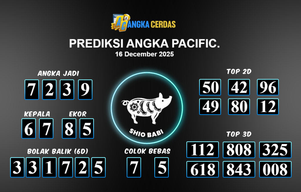 Prediksi Togel PACIFIC untuk hari ini Selasa 16 Desember November 2025, adalah salah