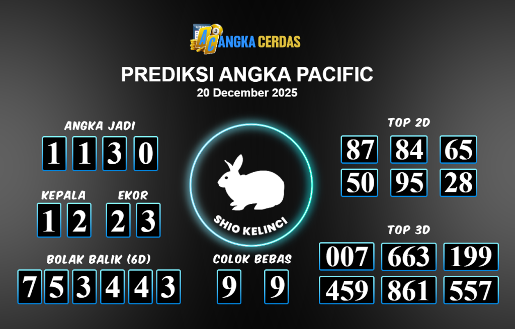Prediksi Togel PACIFIC untuk hari ini Sabtu 20 Desember November 2025, adalah salah