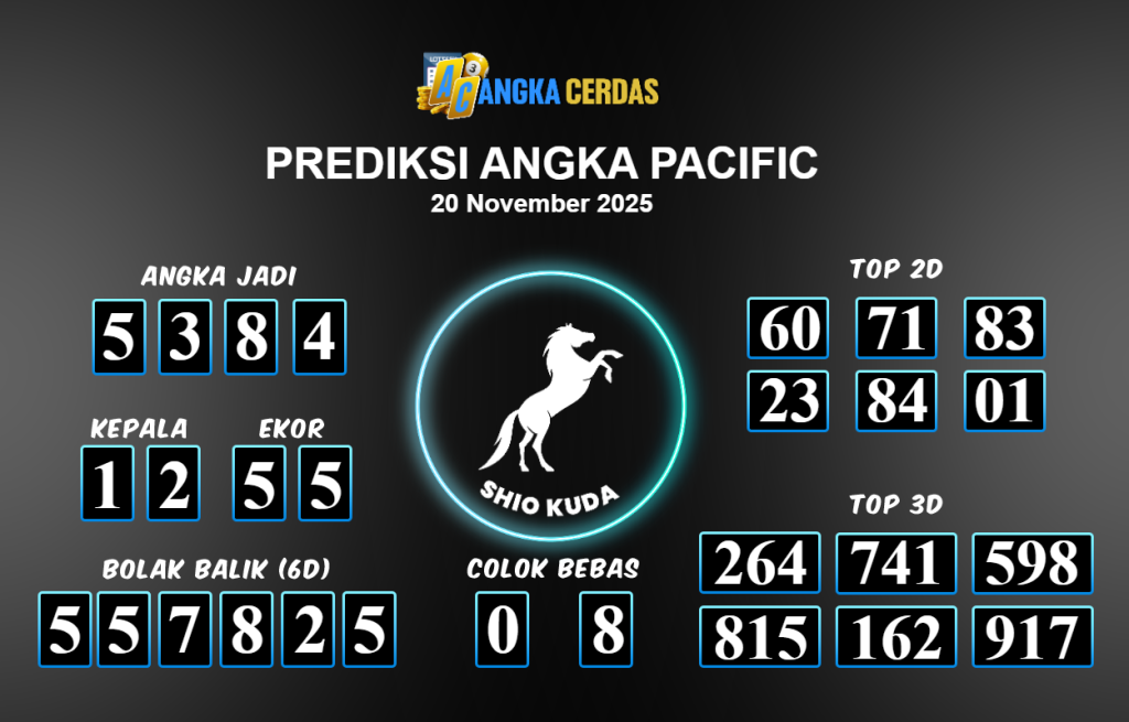 Prediksi Togel PACIFIC untuk hari ini Kamis 20 November 2025, adalah salah