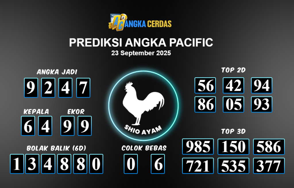 Prediksi Togel PACIFIC untuk hari ini Selasa 23 September 2025, adalah salah