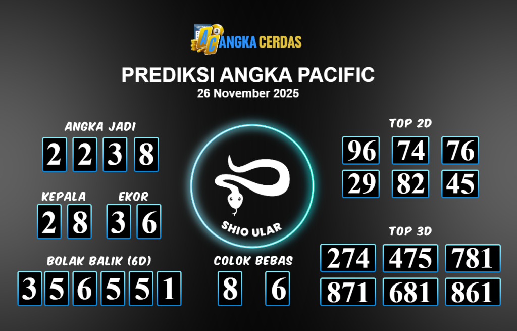 Prediksi Togel PACIFIC untuk hari ini Rabu 26 November 2025, adalah salah