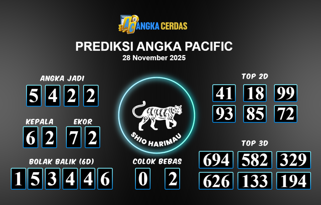 Prediksi Togel PACIFIC untuk hari ini Jumat 28 November 2025, adalah salah
