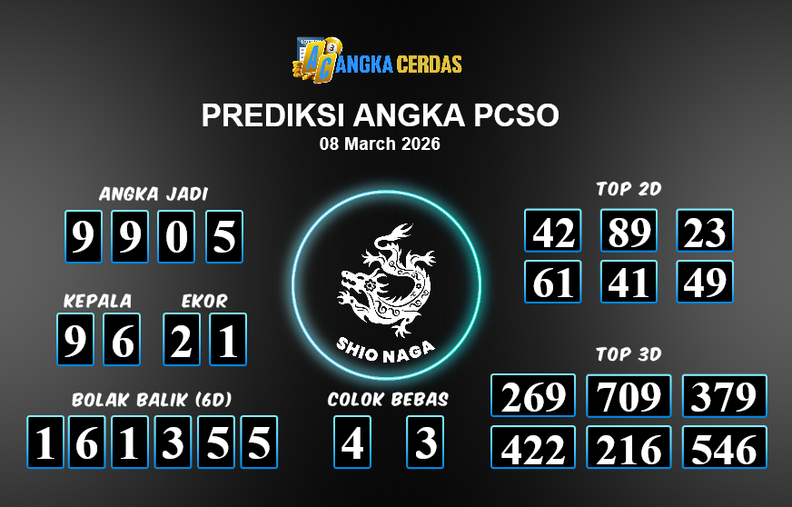 Angka Cerdas : Bocoran Prediksi Togel PCSO Tanggal 08 MARET 2026