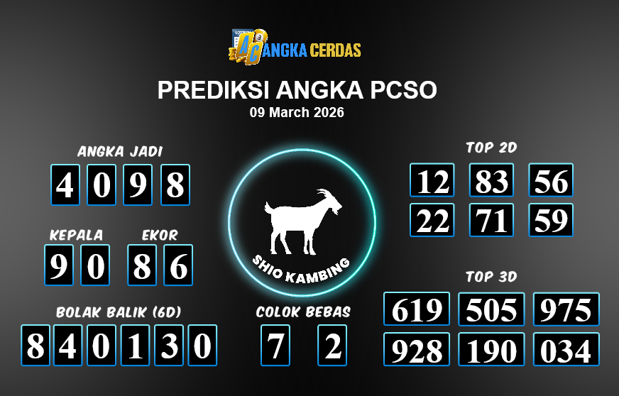 Prediksi Togel PCSO untuk hari ini Senin, 09 Maret 2026, adalah salah