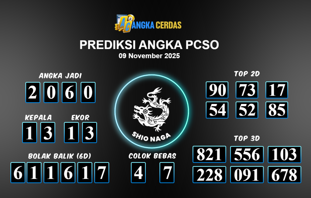 Prediksi Togel PCSO untuk hari ini Minggu 09 November 2025, adalah salah