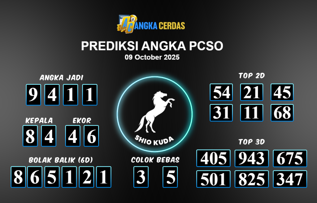 Prediksi Togel PCSO untuk hari ini Kamis 09 Oktober 2025, adalah salah