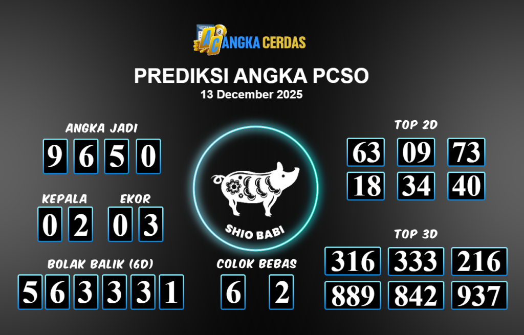Prediksi Togel PCSO untuk hari ini Sabtu 13 Desember November 2025, adalah salah
