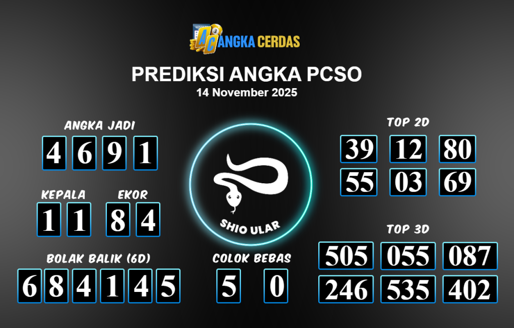 Prediksi Togel PCSO untuk hari ini Jumat 14 November 2025, adalah salah