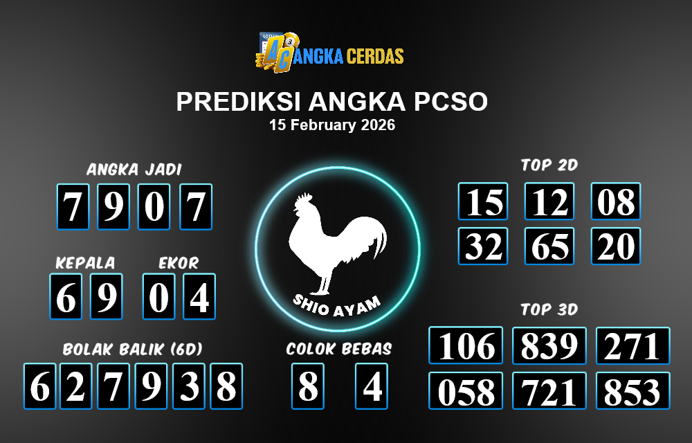 Prediksi Togel PCSO untuk hari ini Minggu, 15 Februari 2026, adalah salah