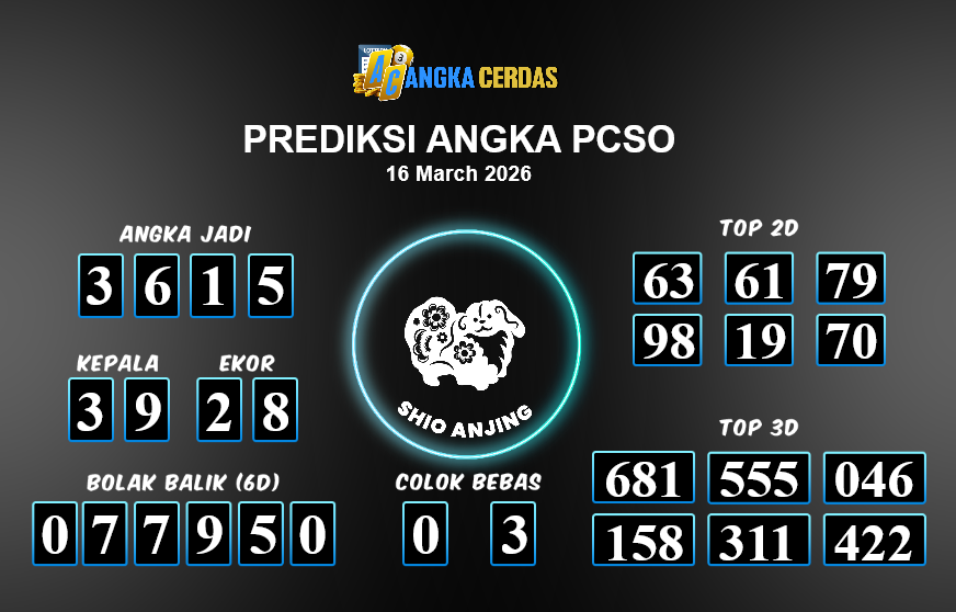 Prediksi Togel PCSO untuk hari ini Minggu, 15 Maret 2026, adalah salah