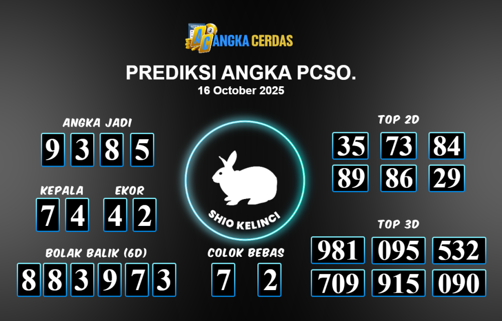 Prediksi Togel PCSO untuk hari ini Kamis 16 Oktober 2025, adalah salah