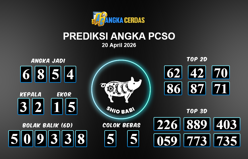 Prediksi Togel PCSO untuk hari ini Senin, 20 April 2026, adalah salahsatu jenis togel yang memiliki banyak penggemar.Ini terutama ditujukanbagi Anda yang menyukai 4d/3d/2d. Prediksi Angka Cerdas yang kamisediakan,bisa