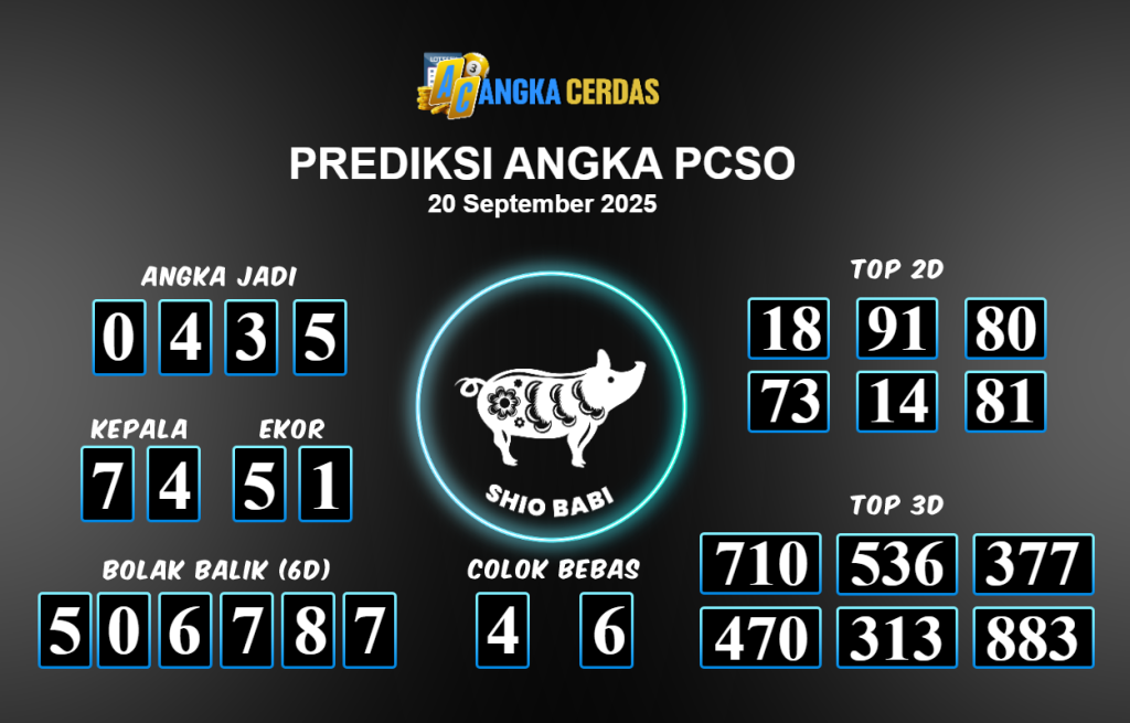 Prediksi Togel PCSO untuk hari ini Sabtu 20 September 2025, adalah salah