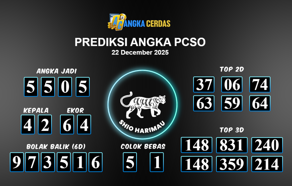 Prediksi Togel PCSO untuk hari ini Senin 22 Desember November 2025, adalah salah