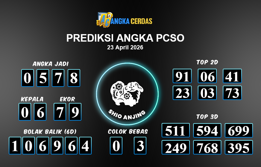 Prediksi Togel PCSO untuk hari ini Kamis, 23 April 2026, adalah salahsatu jenis togel yang memiliki banyak penggemar.Ini terutama ditujukanbagi Anda yang menyukai 4d/3d/2d. Prediksi Angka Cerdas yang kamisediakan,bisa