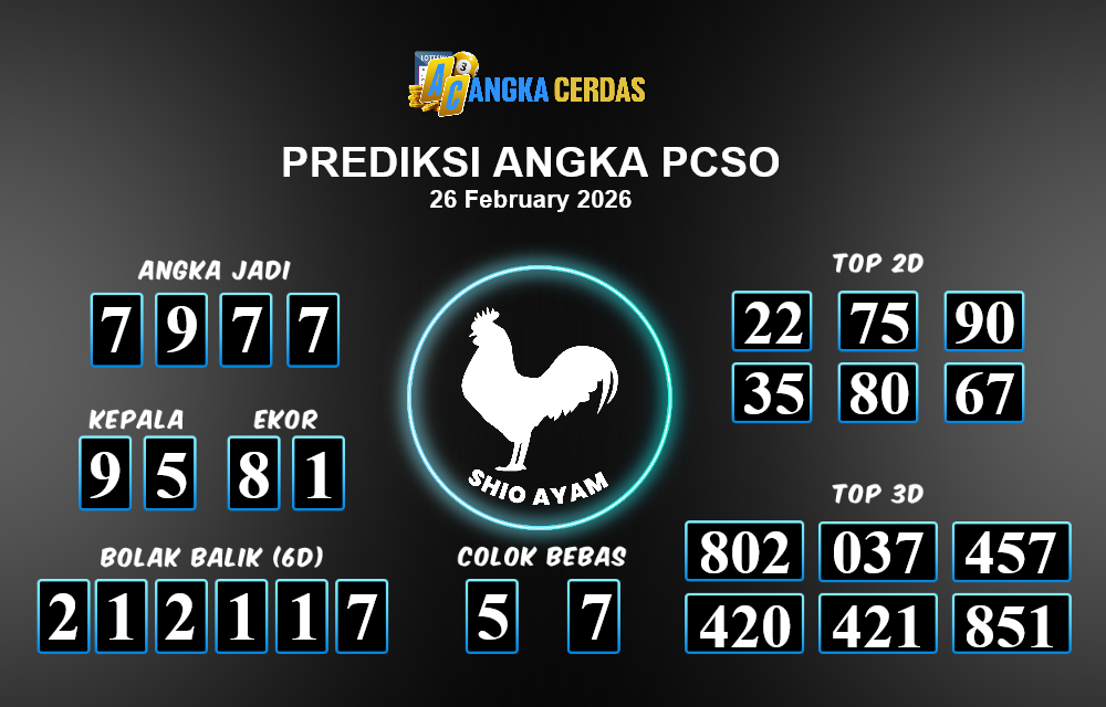 Prediksi Togel PCSO untuk hari ini Kamis, 26 Februari 2026, adalah salah