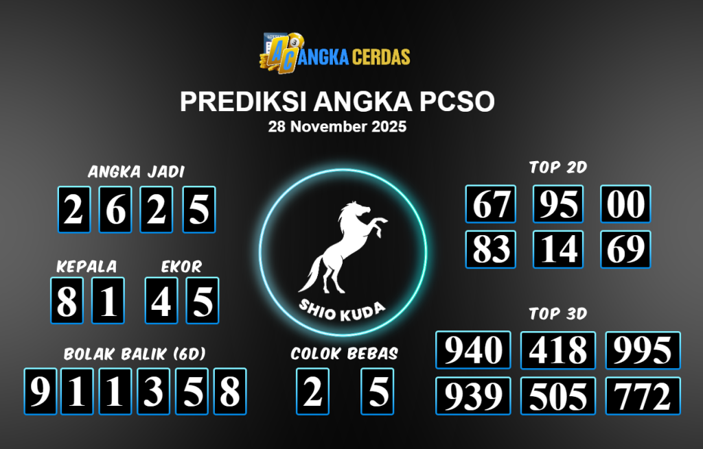 Prediksi Togel PCSO untuk hari ini Jumat 28 November 2025, adalah salah
