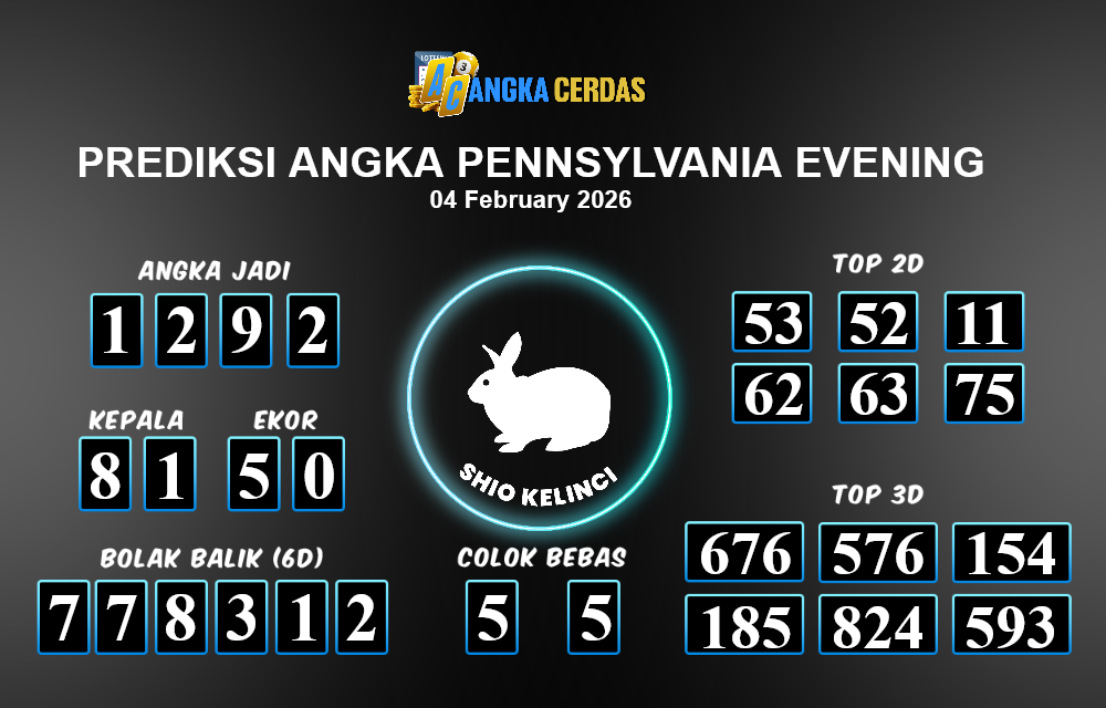Prediksi Togel PENNSYLVANIA EVENING untuk hari ini RABU, 04 Februari 2026, adalah salah