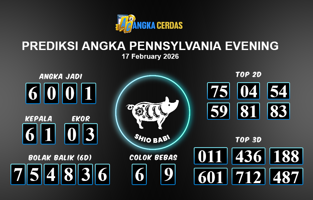 Prediksi Togel PENNSYLVANIA EVENING untuk hari ini Selasa, 17 Februari 2026, adalah salah