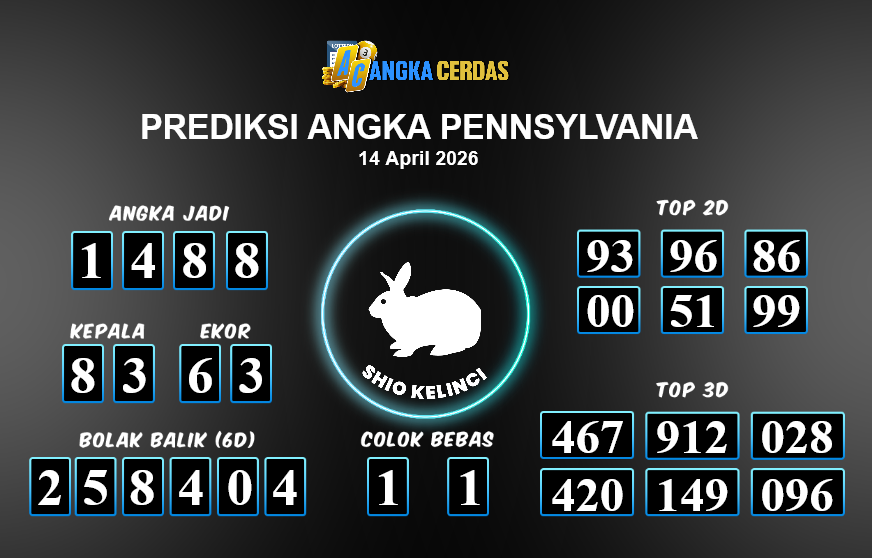 Prediksi Togel PENNSYLVANIA untuk hari ini Selasa, 14 April 2026, adalah salah